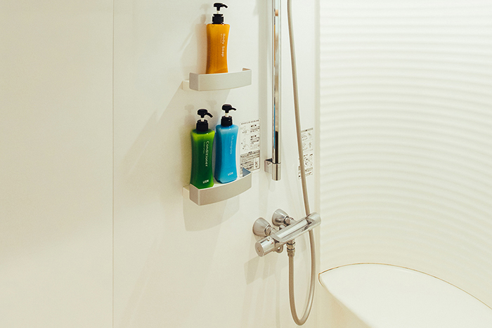 ヘッドシャワーとハンドシャワーを完備。また、シャンプー、リンス、ボディソープも用意しているため安心です。