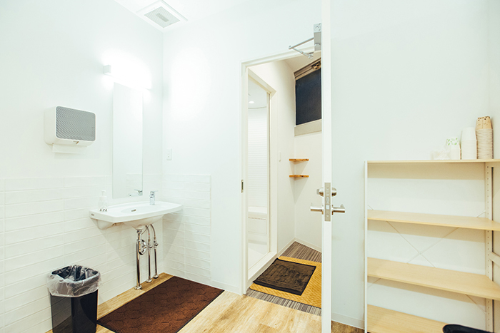 白を基調とした清潔感ある洗面所やシャワーブース